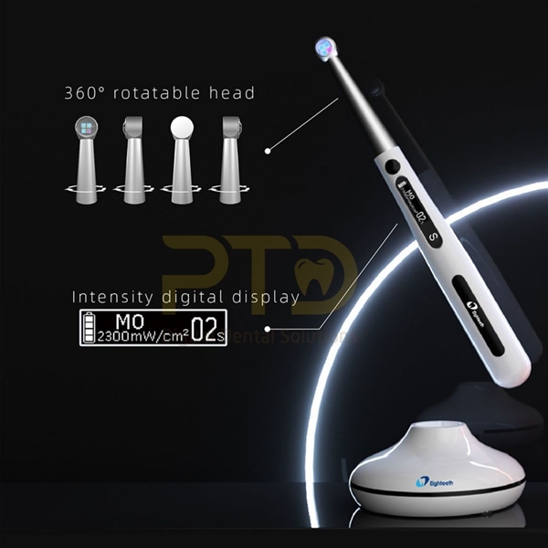 Đầu đèn xoay 360°: Thiết kế đầu nhỏ gọn, dễ dàng tiếp cận các vị trí khó như răng khôn hoặc vùng răng hàm phía sau mà không gây khó chịu cho bệnh nhân.Màn hình kỹ thuật số: Hiển thị rõ ràng các thông số về cường độ và thời gian, giúp bác sĩ kiểm soát hoàn toàn quá trình thao tác.