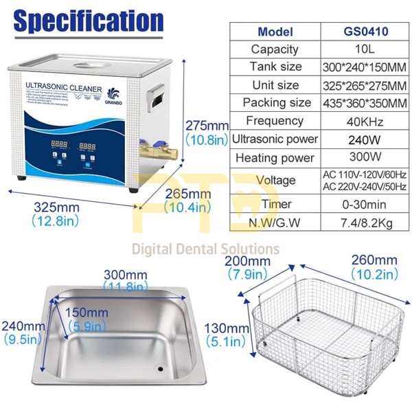 - Kích thước lòng bể lớn (300x240x150mm): Thoải mái sắp xếp các khay dụng cụ nha khoa, tay khoan, hoặc nhiều bộ kìm cùng lúc.